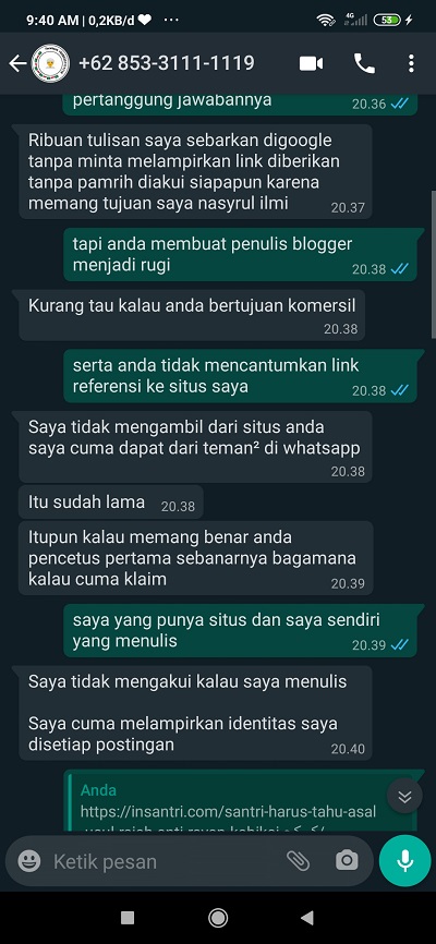 OK: “Saya tidak mengambil dari situs Anda. saya cuma dapat dari teman-teman di whatsapp”. “Itu Sudah lama”. “itu pun kalau memang anda pencetus pertama sebenarnya atau cuma klaim”